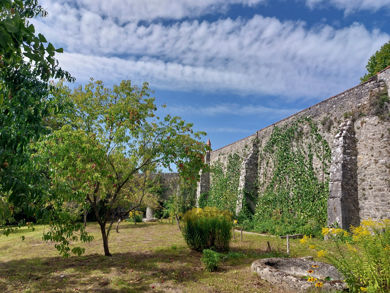 The courtyard of the Convent is accessed through the Saint-Macé gate, the former gate of the abbey enclosure rebuilt in the 18th century. The current courtyard was the upper one of the monastery, connected to the lower one (nowadays Place des Églises) by a vaulted passage at the base of the bell tower (the Saint-Michel gate). On the left, you can see the former hostel where the monks welcomed travelers, and on the right, a large main building and some rooms, barns, and stables. In the middle is a well dating back to the 13th century. On the left you can see the north facade of the Saint Elisabeth chapel (chapel of the abbots), where you can catch a glimpse of the tomb of Saint Aldric, abbot of Ferrières, who died in 841. From this chapel, one could access the small cloister.